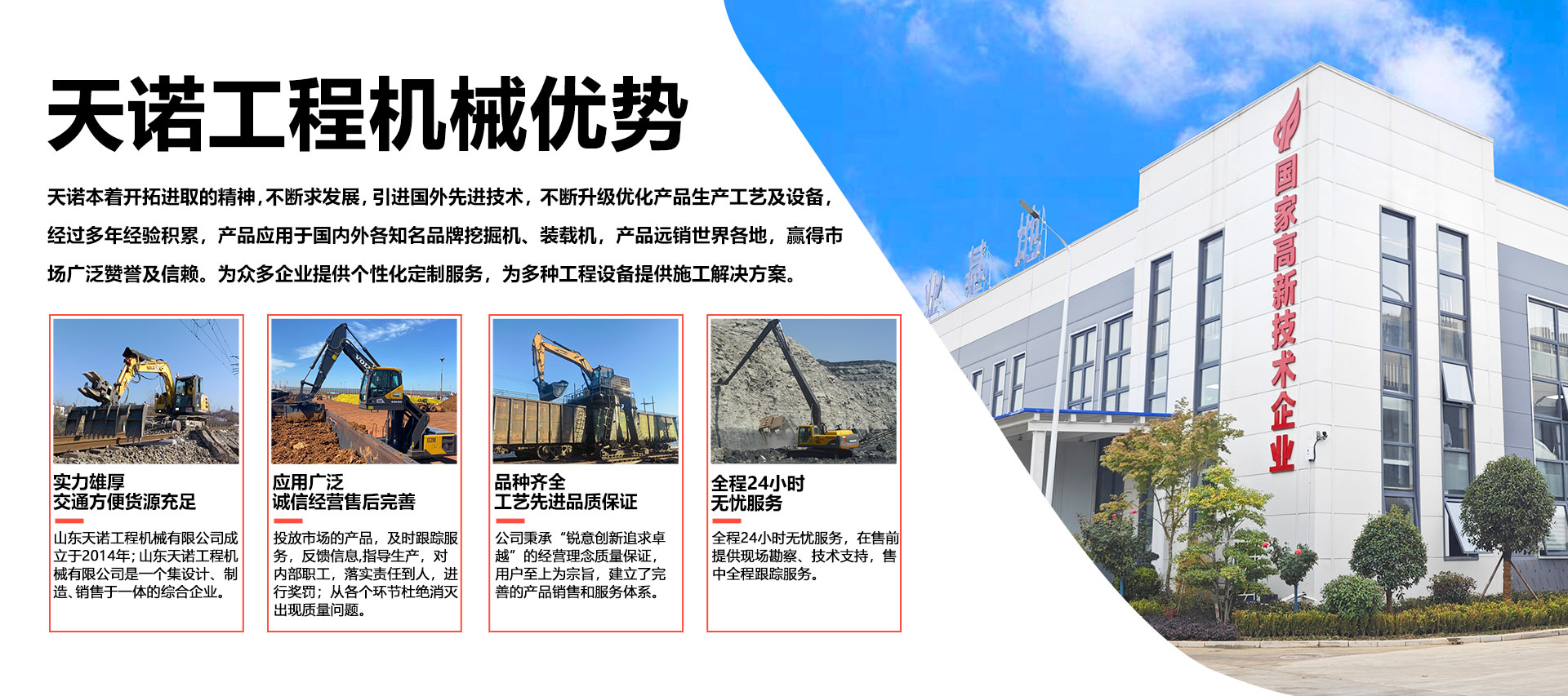 山東天諾工程機械有限公司成立于2014年;天諾工程機械是一個集設計、制造、銷售于一體的綜合企業(yè),生產產品適配各種工程機械設備,主要有:鐵路換枕機改裝,挖掘機升高底盤,挖掘機駕駛室升降,加長臂、三節(jié)臂、打樁臂、巖石臂定制,多型號挖斗鏟斗定制,裝載機防滑履帶,多種類鐵路維護屬具等產品。